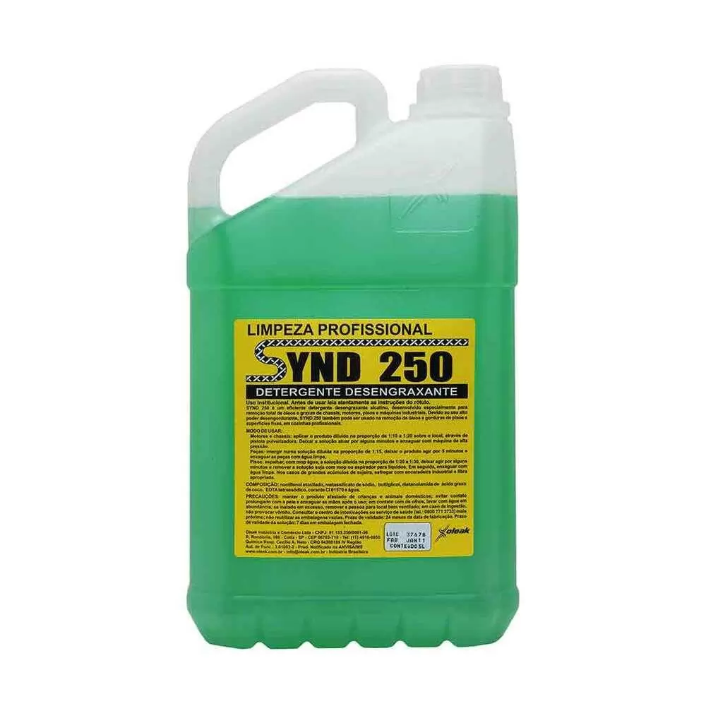 Synd 250 é um desengraxante alcalino, de alta concentração, desenvolvido para remoção de óleos e graxas de chassis, motores, peças usinadas, pisos e máquinas operatrizes, promovendo também a remoção de gorduras em pisos, balcões e coifas de cozinhas profissionais.